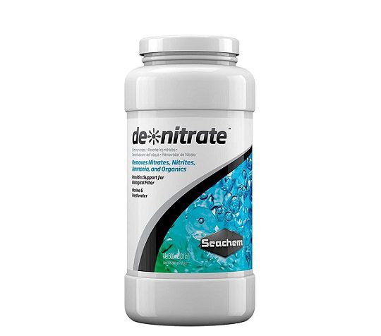 “Live” rocks or reef rocks remove nitrate by anaerobic denitrification. Seachem De nitrate 500ml removes nitrate by the same process. Efficiency is magnified several folds by forcing the water to filter through the porous de*nitrate™. As with reef rock, anaerobic conditions are achieved by the porosity and the depletion of oxygen by the aerobic process at the surface. Excessive flow rates should, therefore, be avoided, as they may impede development of an adequate anaerobic environment to support denitrifying bacteria.