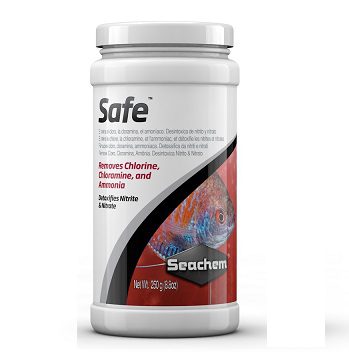Seachem Safe 250g is the complete and concentrated dry conditioner for both fresh and salt water. Safe removes chlorine, chloramine and ammonia. Seachem Safe 250g converts ammonia into a safe, non-toxic form that is readily removed by the tanks biofilter. Safe may be used during tank cycling to alleviate ammonia/nitrite toxicity. Safe detoxifies nitrite and nitrate, allowing the biofilter to more efficiently remove them. Safe is non-acidic and will not impact pH. Seachem Safe 250g will not over activate skimmers. Use at start-up and whenever adding or replacing water.